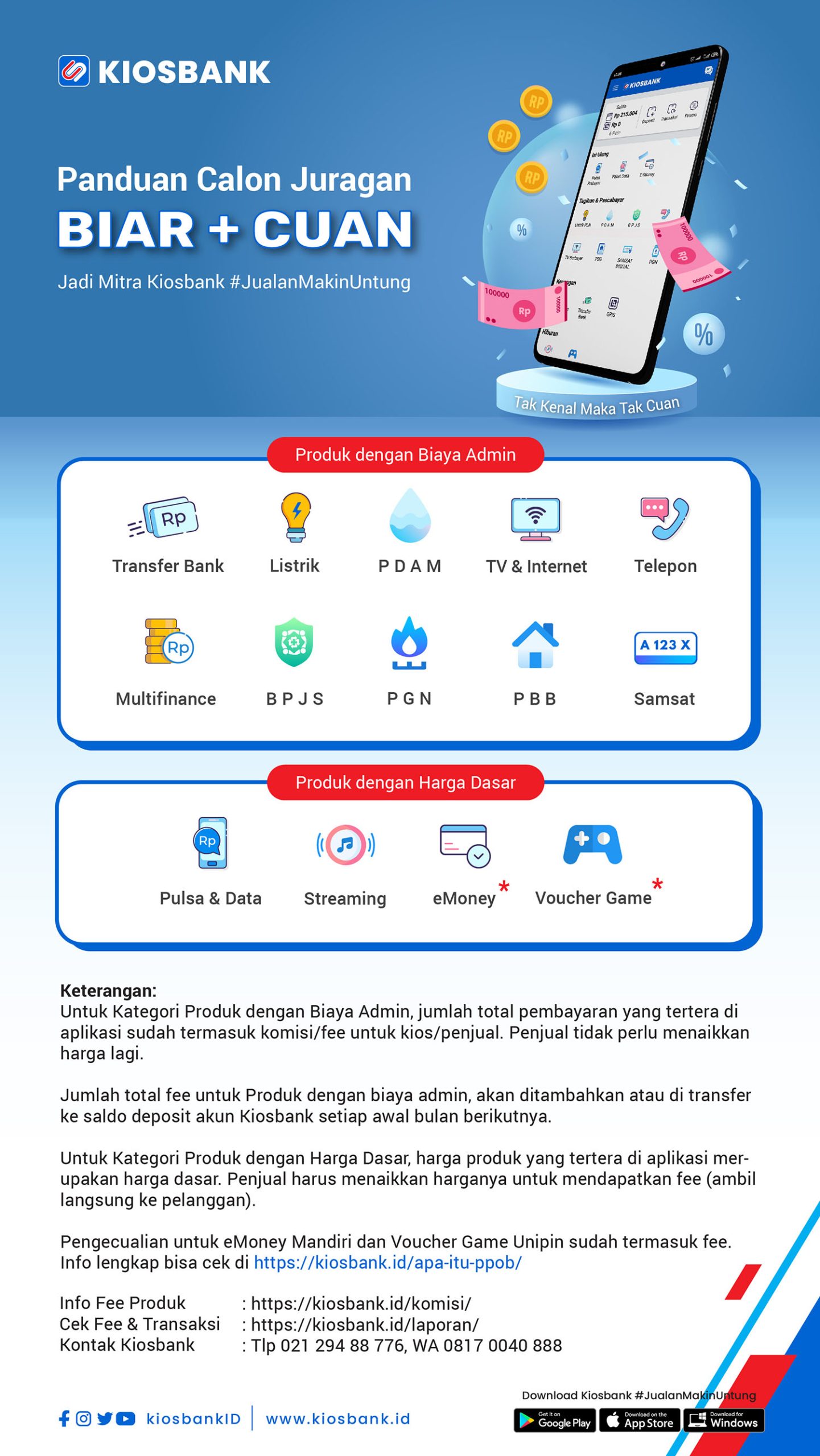 - Update informasi dan ketentuan sharing komisi transaksi lengkapnya di : https://kiosbank.id/komisi/